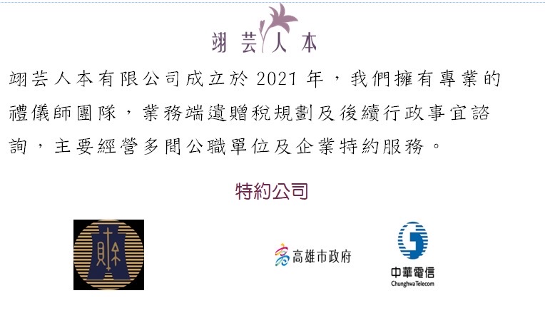 我們是由業界深耕數十年的禮儀規劃師所共同創立,致力於善的執行,禮的延續. 以及如何不留遺憾的與摯愛的親人,好好的告別.