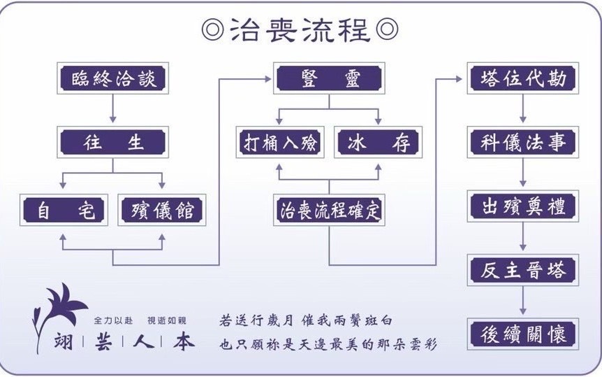 依照國人禮俗習慣,提供臨終諮詢,政府相關行政手續以及相關事宜解答 包括禮儀流程,禮俗,用品,注意事項以及除了契約外的各項殯儀整合性商品,服務事項諮詢。
